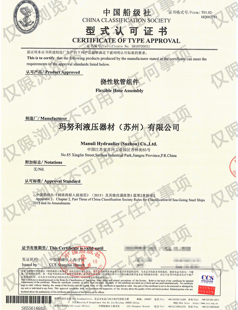 中國船級社型式認可證