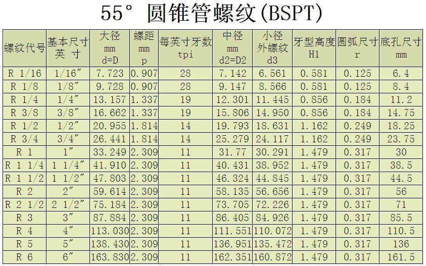 另外螺紋中的1/4、1/2、1/8 標記是指螺紋尺寸的直徑,單位是英寸.“行內人”通常用“分”來稱呼螺紋尺寸,一英寸等于8分,1/4英寸就是2分,如此類推.G 就是管螺紋的統稱(Guan),55,60度的劃分屬于功能性的,俗稱管圓。即螺紋由一圓柱面加工而成。
