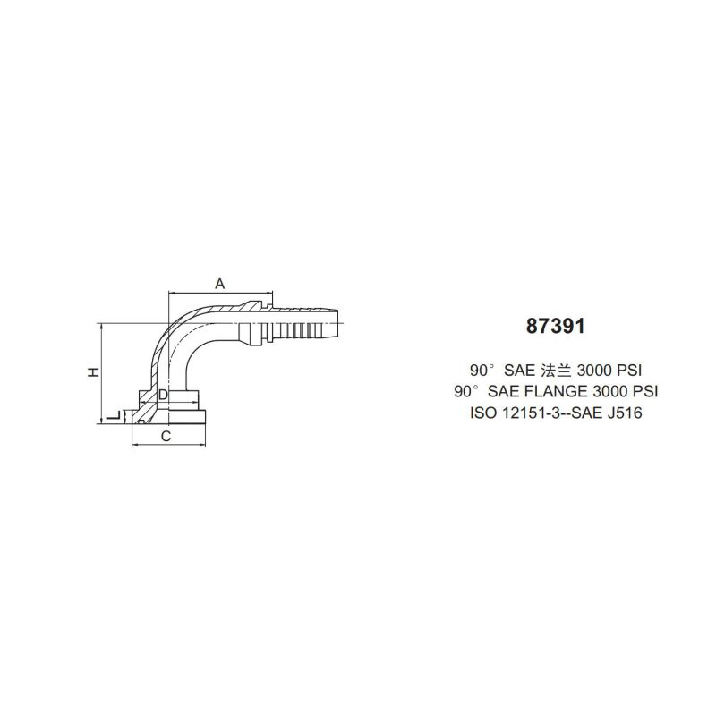 扣壓式接頭87391 90度 SAE 法蘭(flange)3000 psi