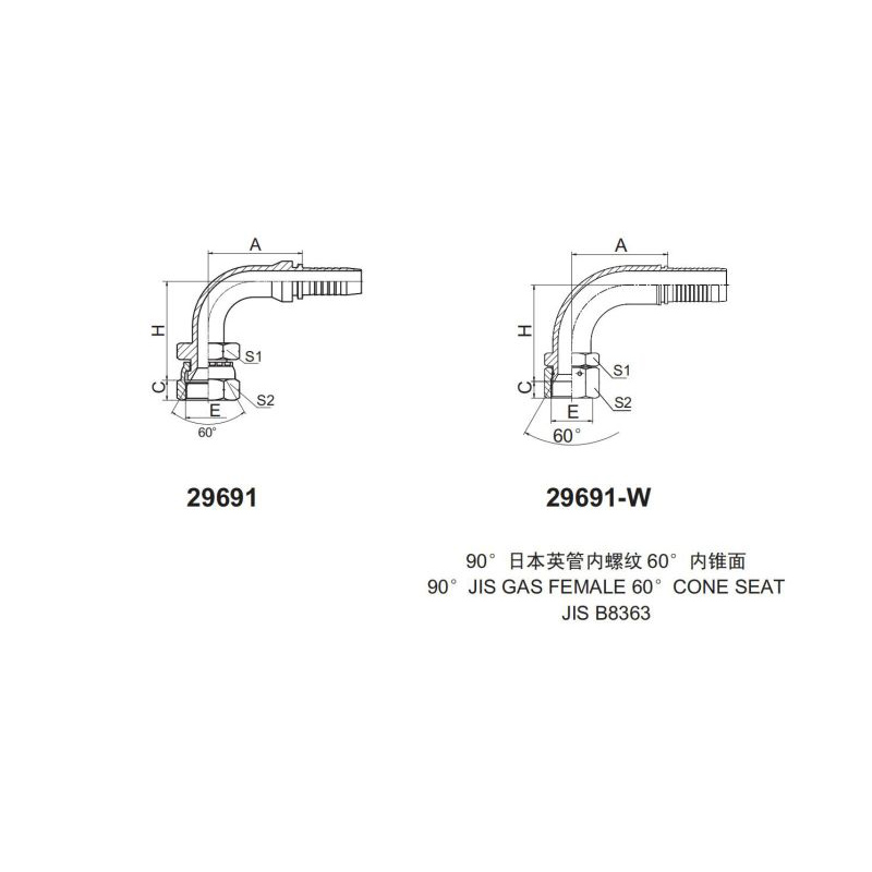 扣壓式接頭29691--29691-W 90度日本英管內螺紋60°內錐面 90° JIS GAS FEMALE 60° CONE SEAT JIS B8363