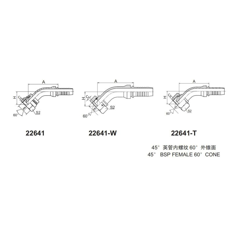 永華標(biāo)準(zhǔn) 扣壓式接頭 22641和22641W以及22641T 45°英管內(nèi)螺紋 60°外錐面 英制管接頭 液壓接頭 BSP螺紋 錐型密封面接頭 總成管接頭